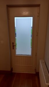 Lovely composite front door in the Cambridge style was fitted in Mullingar. Black on the outside with Cream on the inside. TG501 Glass. Gold lever/lever handle and thumb-turn cylinder.
