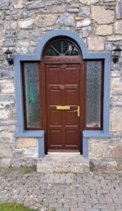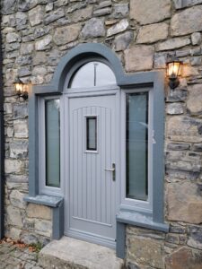 Joyce style composite front door from The Palladio Door Collection with Double Side Panels and Arch.